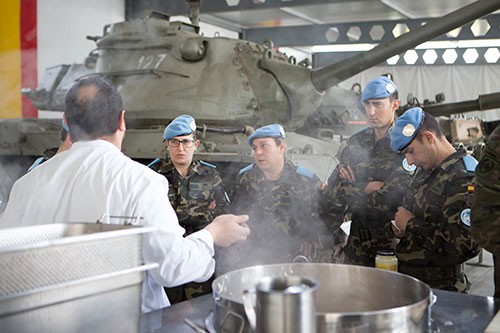 Durante su estancia en la zona, cocinan dos veces por semana en dos escuelas técnicas de hostelería de la zona, Marjayoun y El-Khiam, situadas al sur del país. ‘La colaboración con ESAH nos ha permitido interactuar con la población civil libanesa de una manera más profunda y con conocimientos’ confirmaba el Brigada Ruíz.