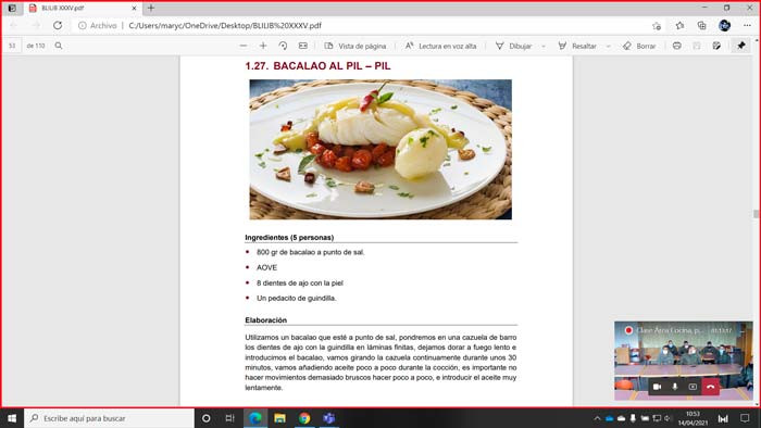 Todos los participantes han recibido un completo recetario que recoge detalles para elaborar algunos de los platos más típicos de nuestro país: salmorejo, gazpacho, croquetas de cocido, empanada gallega, tortilla de patatas, paella, cocido madrileño, bacalao ajoarriero, merluza en salsa verde, pollo en pepitoria, natillas, arroz con leche o tarta de Santiago, entre otras delicias culinarias.